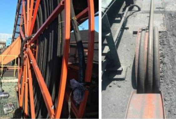 大型物料堆場(chǎng)的堆、取料機(jī)機(jī)上供水都采用沿堆場(chǎng)長(zhǎng)度一樣長(zhǎng)的水槽供水。而采用隨機(jī)供水裝置,則是將一根具有電加熱防凍并且隨機(jī)自動(dòng)收、放的水纜,從地面向物料堆場(chǎng)的堆、取料機(jī)上進(jìn)行四季供水,使環(huán)保供水變得高效便捷。
